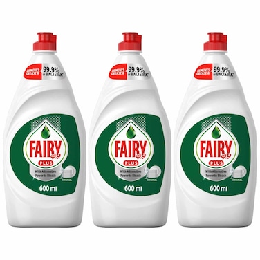 Fairy Plus Original Dishwashing Liquid Soap With Alternative Power To Bleach 600ml Pack of 3