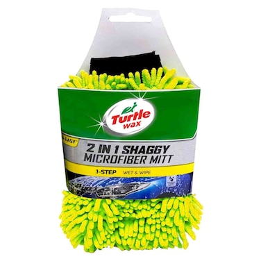 The Turtle Wax Wet And Wipe 2-In-1 Shaggy Microfiber Mitt in Green is a versatile cleaning tool for your car.