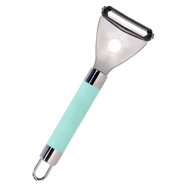 It features a durable plastic handle in a refreshing mint colour, making it easy to spot in your utensil drawer. The sharp stainless steel blade effortlessly peels fruits and vegetables with precision.
