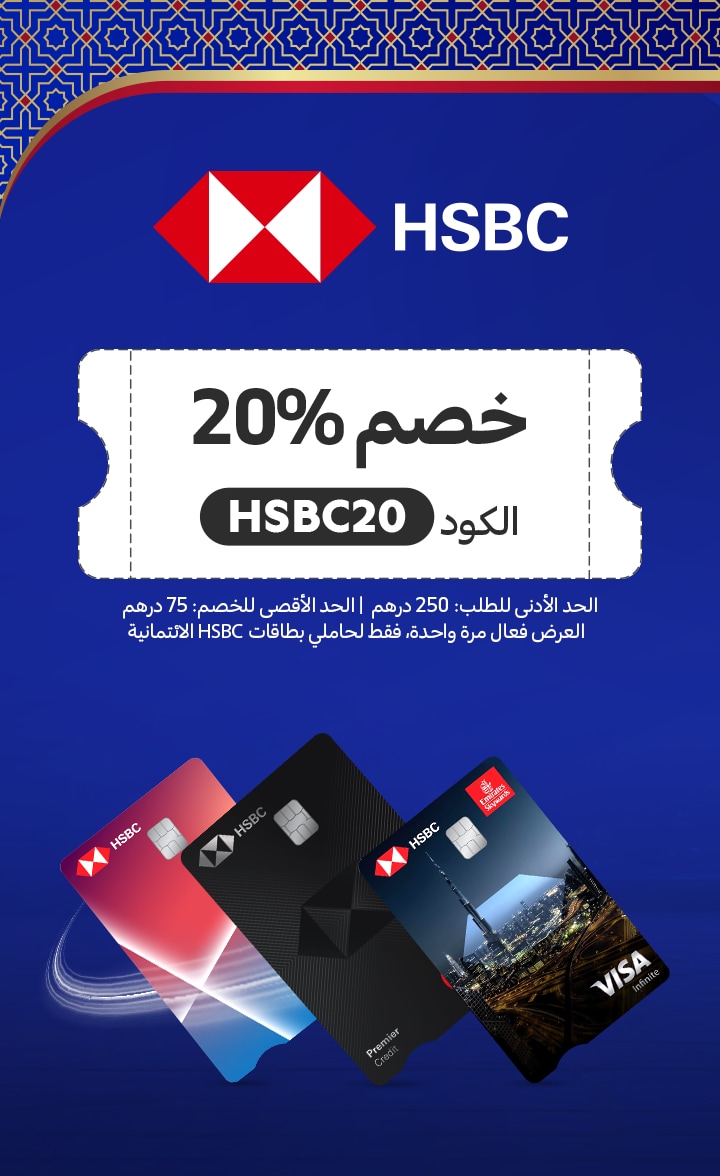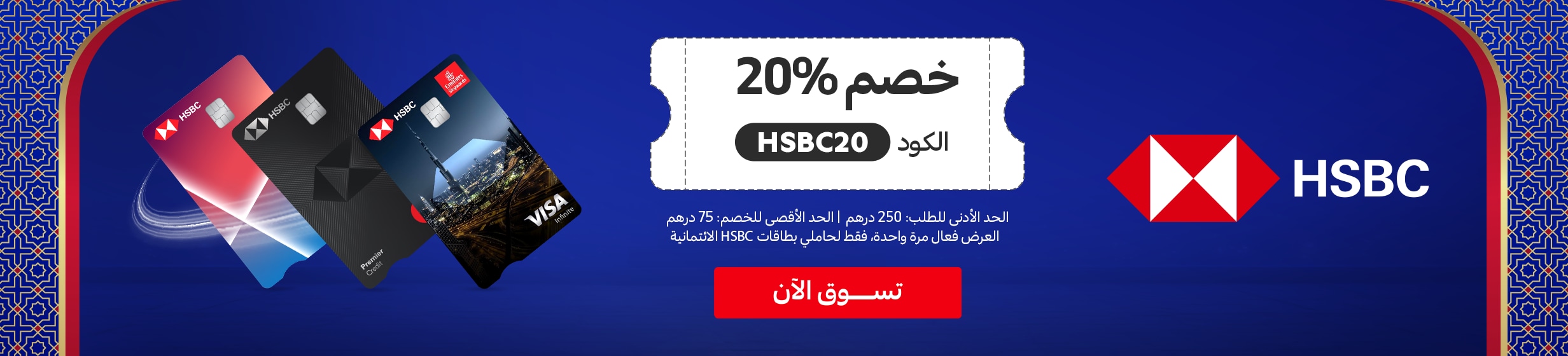 خصم حتى 75 درهم مع بطاقات HSBC. استخدم الرمز HSBC20