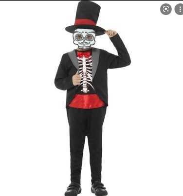The Smiffys Day of the Dead Boy Costume with Jacket, Mock Top, Pants, Hat & Mask. Please note that all our Smiffys products will always come in full Smiffys branded packaging. Our dedicated in-house Safety team ensure that all of our products are manufactured and rigorously tested to comply with the latest EU and American Safety standards and regulations. All our children's costumes are tested to both EN71 and Nightwear (Safety) standards. This is to provide complete reassurance that all our children's costumes are safe and fit for purpose.