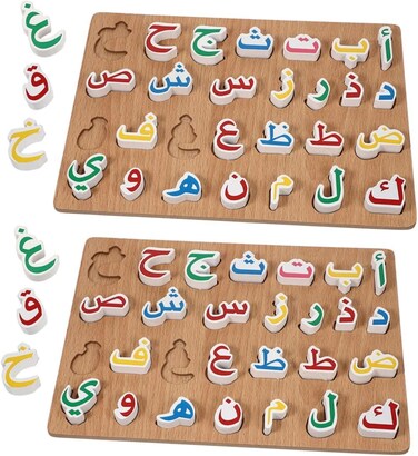 Arabic Puzzle Letter Puzzle Wooden Toddler Puzzles Puzzle Toys Jigsaw Puzzle Toy Kids Wooden Puzzle Arabic Alphabet for Kids Girl Wood Learning Board Preschool (2 Pcs Set)