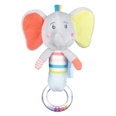 تتميز بتصميم الفيل الناعم والمحبوب بألوان وملمس زاهٍ لتحفيز حواس الطفل. توفر الخشخشة الداخلية صوتًا لطيفًا يجذب إنتباه طفلك الصغير.
