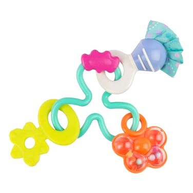 تتميز بخرزات متعددة ذات ملمس ناعم تدور وتصدر خشخشة عند هزها، مما يوفر تحفيزًا سمعيًا ولمسيًا. كما تساعد الألوان النابضة بالحياة والأشكال المختلفة للخرز في تحفيز التطور البصري للطفل.