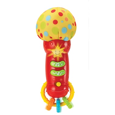 تتميز بأزرار وأضواء ملونة تجذب الصغار وتسليهم. يقوم الميكروفون أيضًا بتشغيل ألحان ومؤثرات صوتية مختلفة مما يسمح للأطفال بالغناء والشعور وكأنهم نجم موسيقى الروك.