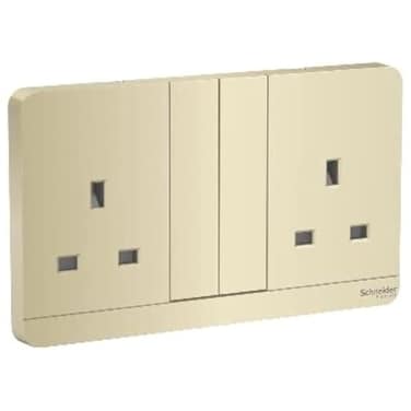 شنايدر إلكتريك AvatarOn، مقبس ثنائي مع نيون، 13 أمبير 250 فولت، ذهبي خمري، E83T25N_WG_G12