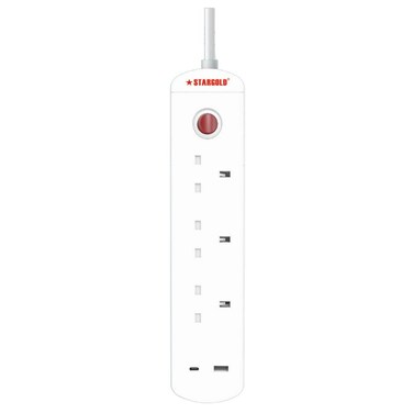 STARGOLD Multiple cord Extension Set Overload Protector Electric Charging Lead 3 Way Ac Output with 1 USB and 1 USB-C Port Anti-Fire 750⁰C, 13A 5M Long Power Cable Heavy Duty Charging Station- White