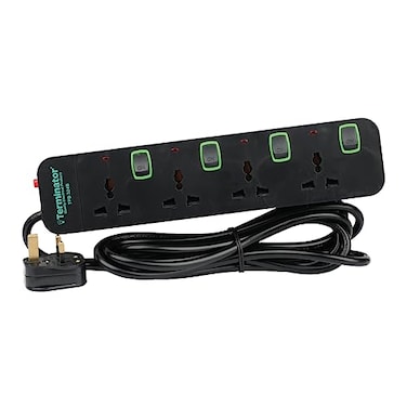 تيرميناتور وصلة تمديد كهربائية عالمية بأربع منافذ مع حماية من الحمل الزائد، مفاتيح بإطار أخضر، مؤشرات وكابل بطول 3 أمتار (TPB 324B-3M)
