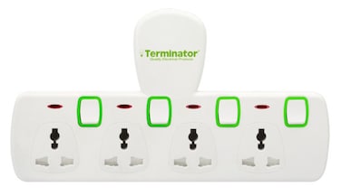 تيرمينيتور - مقبس تحويل طاقة عالمي ب 4 مقابس مع مفاتيح فردية ومؤشرات، 13 أمبير، معتمد من ايزما