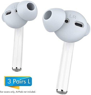 اها ستايل 3 أزواج سيليكون سماعات الأذن يغطي حالة ابل AirPods 1 هوك التخزين الحقيبة، ومكافحة زلة نصائح الأذن (3 أزواج كبير، أزرق فاتح)