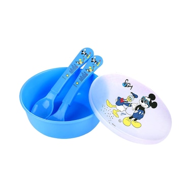 يشمل مجموعة وعاء تغذية ميكي ماوس من ديزني TRHA1711 أزرق اللون ثلاث أوعية تظهر الشخصية الأيقونية ميكي ماوس.