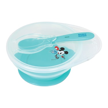 ديزني ميكي ماوس طقم وعاء وملعقة من السيليكون - متعدد الألوان