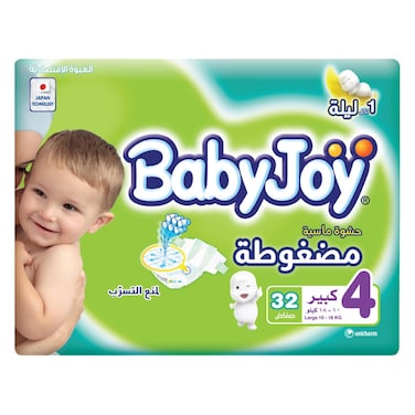 بيبي جوي حفاضات مضغوطة مقاس كبير 4 10-18 كغ حزمة اقتصادية من 32