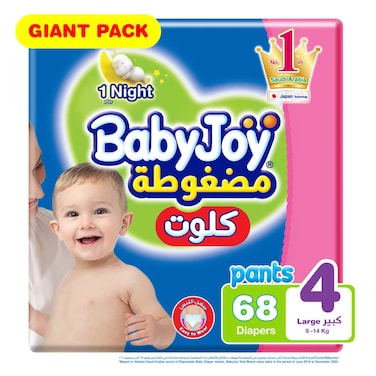 بيبي جوي حفاضات كولوتيه مقاس كبير 4 9-14 كغ حزمة عملاقة من 68