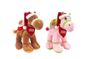 Bundle item - Brown camel + Pink camel with Santa hat with Merry Christmas print on red bandana, size 25cm