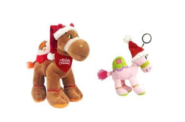 - Bundle item - Brown camel with Santa hat with Merry Christmas print on red bandana, size 18cm + Pink key ring with Santa Hat 12cm