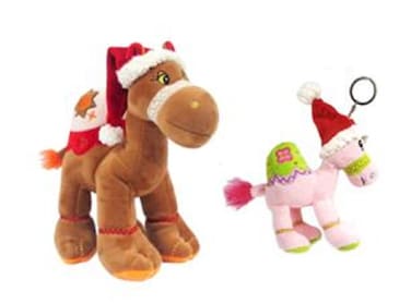 - Brown camel with santa hat 18cm and Pink key ring 12cm