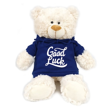 كارافان - دب كريمي بطبعة على هودي أزرق 38 سم