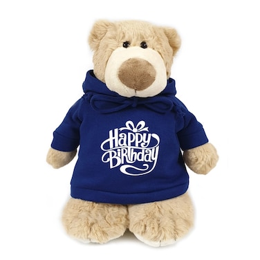 كارافان - دمية ناعمة على شكل دب مع عيد ميلاد سعيد بغطاء رأس أزرق مقاس 28 سم