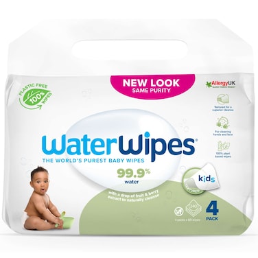 ووتر وايبس مناديل خالية من البلاستيك للأطفال الصغار والرضع 240 منديل مبلل (4 عبوات)
