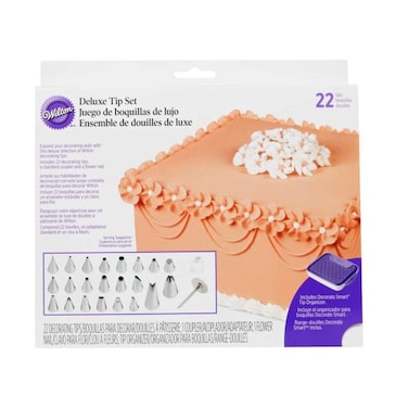 - <p>قم بتوسيع مهاراتك في التزيين مع هذه المجموعة الفاخرة من أطراف التزيين من ويلتون. تتضمن المجموعة الفاخرة 22 طرفًا للتزيين لمجموعة متنوعة من خيارات التزيين. بالإضافة إلى ذلك ، يحتوي على مقرن قياسي ومسمار معدني 1.25 بوصة. بالإضافة إلى ذلك ، فإن المجموعة الكاملة مضمنة في منظم الأطراف من ويلتون لتنظيم وتخزين الأطراف بشكل مثالي.