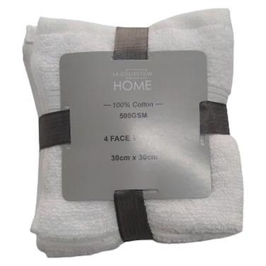 لا كوليكسيون طقم مناشف وجه من القطن ية 500 غرام/م² - أبيض ساطع 30 × 30 سم 4 قطع