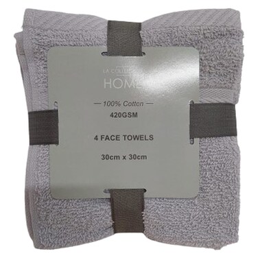 لا كوليكسيون طقم مناشف وجه من القطن ية 420 غرام/م² - رمادي فاتح 30 × 30 سم 4 قطع