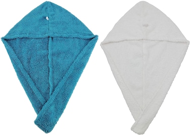 منشفة استحمام عمامة ، قطعتين من القطن ، منشفة استحمام من القطن 100٪ ، مجفف سريع ماجيك ، قبعة استحمام ملفوفة (تيل-ابيض)