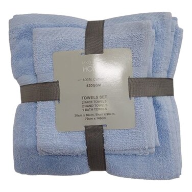 أل أي كولكشن 420 GSM مجموعة مناشف قطنية - أزرق فاتح 5 قطع