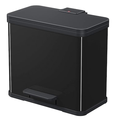 Cushion lid closing mechanism; large opening angle ensures waste drop into the bin, rubber climping ring for bin liners & non slip feet.