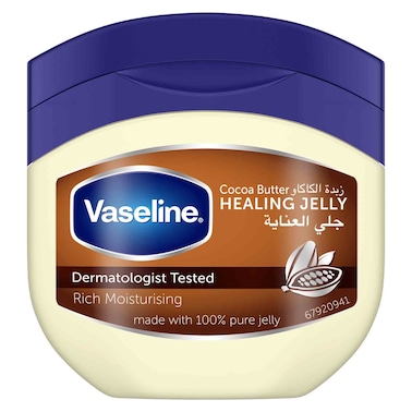 فازلين 100% جيلي البترول النقي للبشرة الجافة بزبدة الكاكاو لعلاج البشرة الجافة والتالفة 100 ملل