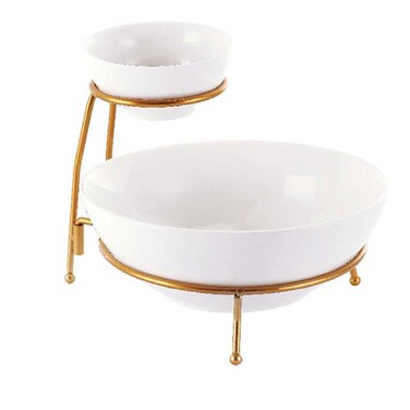 تعد مجموعة التقديم شالو المكونة من طبقتين باللون الأبيض الإضافة المثالية لأي طاولة طعام أو بوفيه