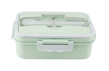 صندوق الغداء هذا مصنوع من قش القمح وقابل للتحلل البيولوجي وآمن على البيئة. تأتي مع ملعقة وشوكة تتناسب بشكل أنيق داخل صندوق الغداء مما يجعلها مناسبة للوجبات أثناء التنقل.