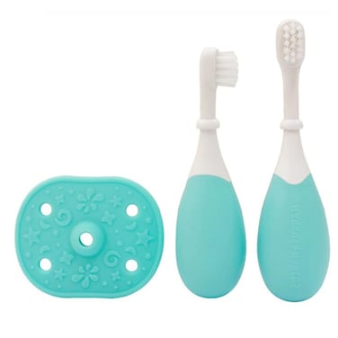 Marcus & Marcus’ 3-Stage Palm Grasp Toothbrush Brush Set was designed with little hands and little mouths in mind. This Toddler Toothbrush is the perfect training tool for little ones before they move on to our Kid’s Oral Care Sets. The round palm grasp is designed for your little one’s developing vice grip and the small brush head is perfect for little mouths. The extra soft nylon bristles are cut in a convex shape for the best care and comfort of little teeth. Our Palm Grasp Toothbrush features a three stage system to grow with your little one.