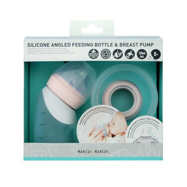 Marcus & Marcus Silicone Angled Feeding Bottle & Breast Pump gives mothers an easy and convenient way to express breastmilk as they may store and feed a baby with the same silicone bottle.