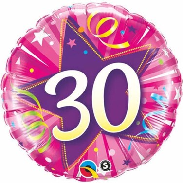 - Qualatex Age 30 Shine Star Round Foil Balloon- 18 Inch Size- Hot Pink