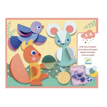Contents: 4 illustrated cards, 6 sheets of pre-cut illustrated paper circles, 5 googly eyes, 1 sheet of double-sided adhesive stickers, 1 explanatory booklet in colour with pictures only.