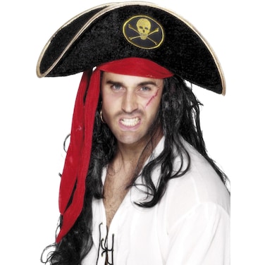Smiffys Pirate Hat with Skull and Crossbones- Black