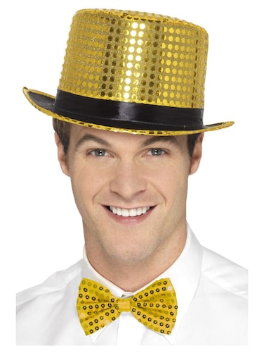 Smiffys Sequin Top Hat with Elastic Inner Rim can add some extra sparkle to your party look with this fabulous sequin top hat. Great fancy dress accessory perfect for that party costume. Superb quality with sequins. Comes in gold colour.