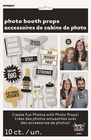 Unique New Year Resolution Photo Props Decorations 10-Pieces- Black