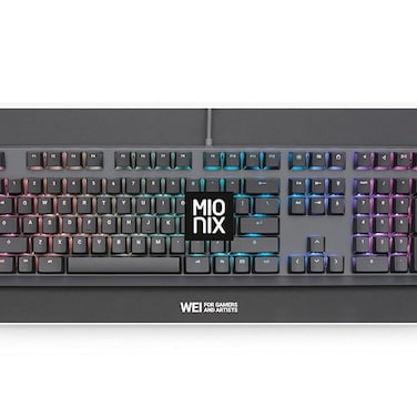 لوحة مفاتيح ميكانيكية من ميونيكس بتصميم أمريكي - لأجهزة الكمبيوتر الشخصية وماك - إضاءة خلفية (ار جي بي) (اسود/رمادي)