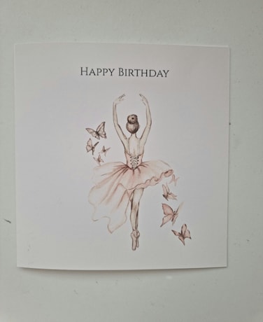 Pretty Water colour printed Ballerina Birthday card. This can be persoanlised with names upon request when ordering the card. The inserts are blank for you to write your personal message. PLEASE NOTE : IF NO NAMES OR DETAILS ARE GIVEN WHEN ORDERING, THE CARD WILL BE SENT AS SEEN.