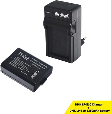 بطارية (دي ام كيه) باور (LP-E10) (1350 ملي أمبير / ساعة) مع شاحن بطارية لكاميرا كانون إي او اس ريبيل T3 T5 T6 T7 Kiss X50 Kiss X70 EOS 1100D EOS 1200D EOS 1300D (بطارية + شاحن)