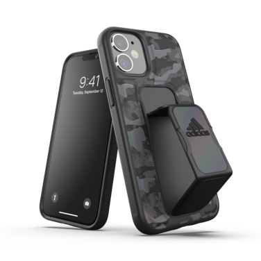 حافظة رياضية من اديداس لجهاز ابل ايفون 12 ميني كامو - غطاء خلفي مع مقبض أو حامل ، حماية من الخدش والسقوط مع ممتص للصدمات تي بي يو ، متوافق مع الشحن اللاسلكي - أسود