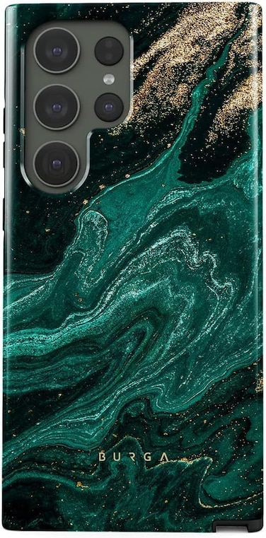 غطاء حماية للهاتف المحمول Samsung Glaxy S24 Ultra من Burga مصنوع من طبقتين من السيليكون الصلب وغطاء حماية من السيليكون باللون الأخضر الزمردي والحجر الذهبي اللامع والرخام المقاوم للخدش