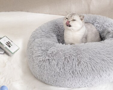 The Round Bed Features A Blanket And Your Little Furry Friends Will Feel Surrounded By Love And Warmth, Allowing Them To Experience Truly Restful Sleep. Providing A Cozy Nestling Space For Pets To Curl Up And Snuggle In Warmth. This Made Of Premium Materials, Can Be Washed By Washing Machine And Dryer, Do Not Bleach To Prevent Matting, You'd Better Dry The Bed In The Dryer On Low Heat After Washing. Non-Skid Bottom Keep The Cat Bed In Place For Worry-Free Placement On Tile And Hardwood Floors In The Home. Filled With High-Soft Recycled Polyester Fiber.