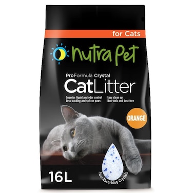 Nutrapet Designed in the United States of America now launches its line of Silica Gel Cat litter. Available in three sizes, 3.8 L, 7.6L and 16L AND NOW 30L.This product comes with superior absorption, advanced odor control, convenient and easy to use, less tracking and lastly environmental friendly.ADVANTAGES OF CRYSTALS CAT LITTER-no clumping action- more eco briendly because it naturally bio-degradable- this litter tends to be a bit tidier with less mess- when it comes to fighting odor, crystals cat litter does a good job absorbing the odor and masking the undesirable odor of cat urine- unlike many litters, you only to to completely replace this litter approximately once every month- if you have allergies or just want less dust in the house, you will like crystals cat litter- the manufacturer even says you can flush the litter down your toilet- at a time when it seems like everything around us is toxic to our health, crystals are said to be non-toxic