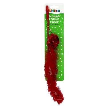ويبوكس كريسمس لعبة عصا بالريش للقطط لعيد الميلاد -حمراء 30 غرام