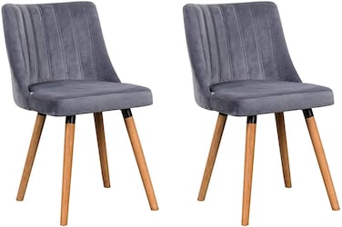 مجموعة من 2 كرسي غرفة المعيشة مودرن تي 859 ليجر من القماش لغرفة الطعام ، غرفة الملابس ، رمادي داكن