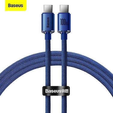Baseus 100W 4ft USB C To USB C Cable Fast Charge Nylon Braided Type-C Cable for iPhone 15 Pro/iPhone 15 Pro Max/iPhone 15 Plus/iPad Air/iPad/MacBook Samsung S23/Huawei/Xiaomi And Many More Blue Blue